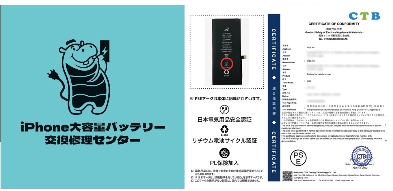 当店の取扱いバッテリーは全て「PSE認証」済です