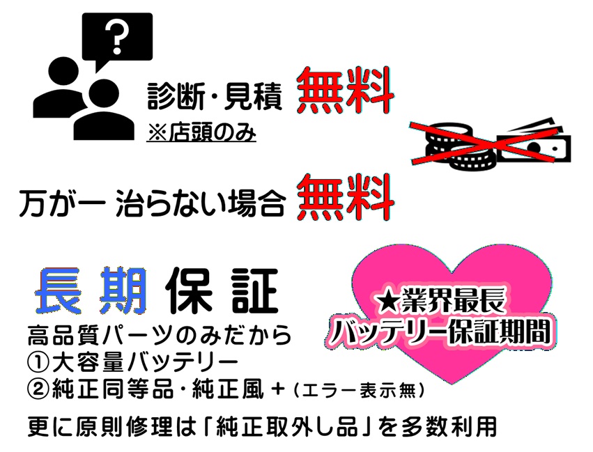 - 修理中の「 代替機(無料)iPhoneあります 」 ※詳細は店頭にて