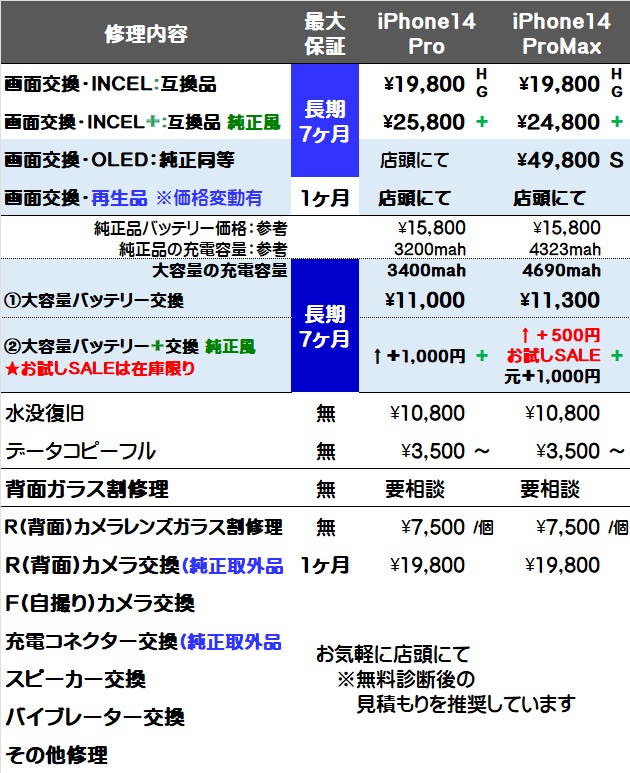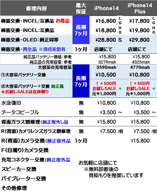 通常はどのお店で交換しても画面交換やバッテリー交換をすると