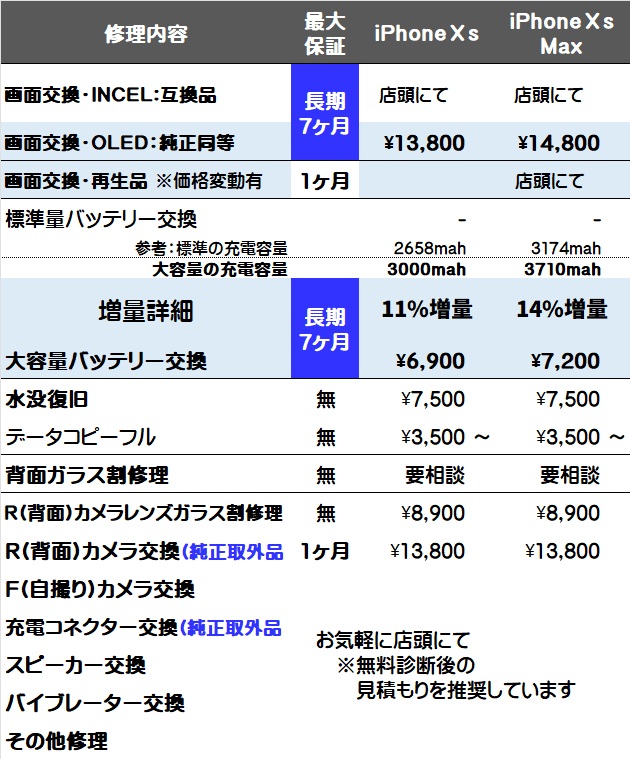 画面と大容量バッテリー交換は全て対象