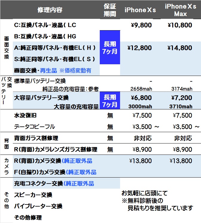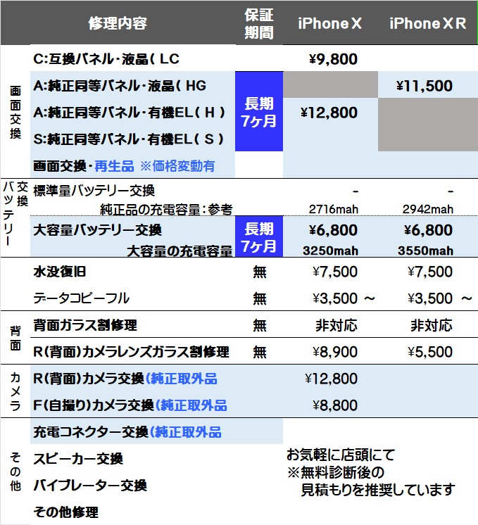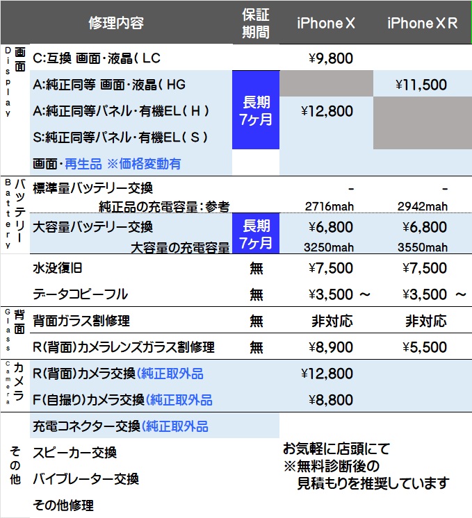 画面交換と大容量バッテリー交換が対象で