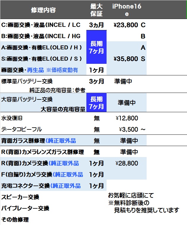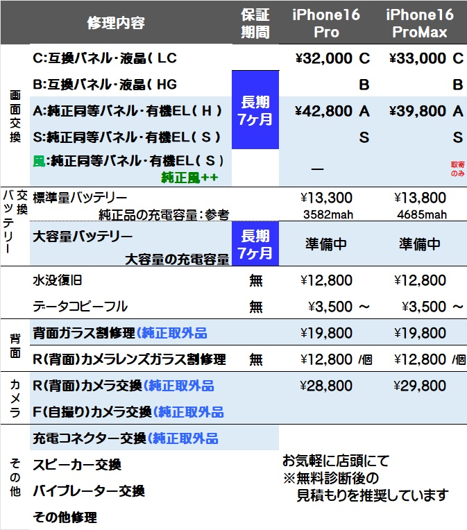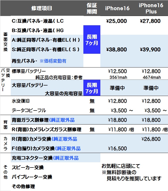 通常はどの修理屋さんで画面交換やバッテリー交換をすると