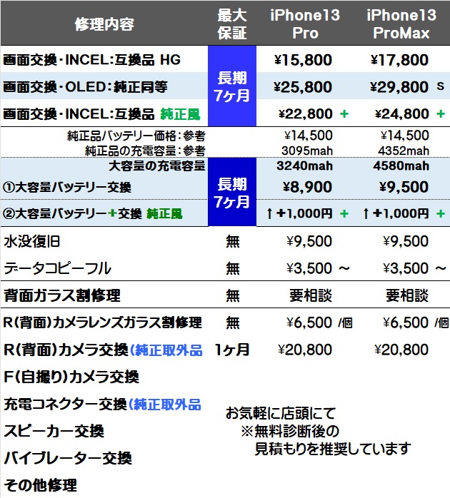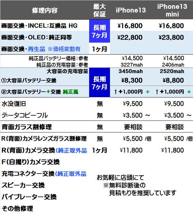 通常はどのお店で交換しても画面交換やバッテリー交換をすると