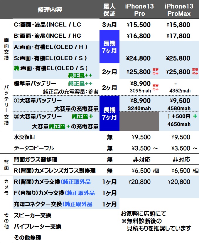 通常はどの修理屋さんで画面交換やバッテリー交換をすると