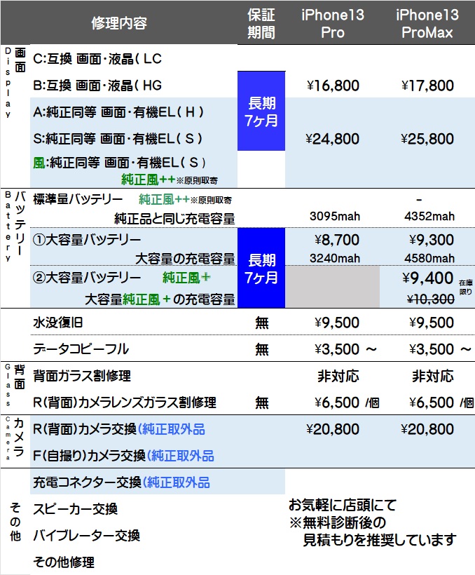 画面交換と大容量バッテリー交換が対象で