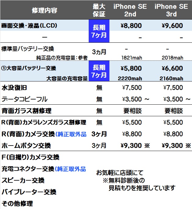 画面交換と大容量バッテリー交換が対象で