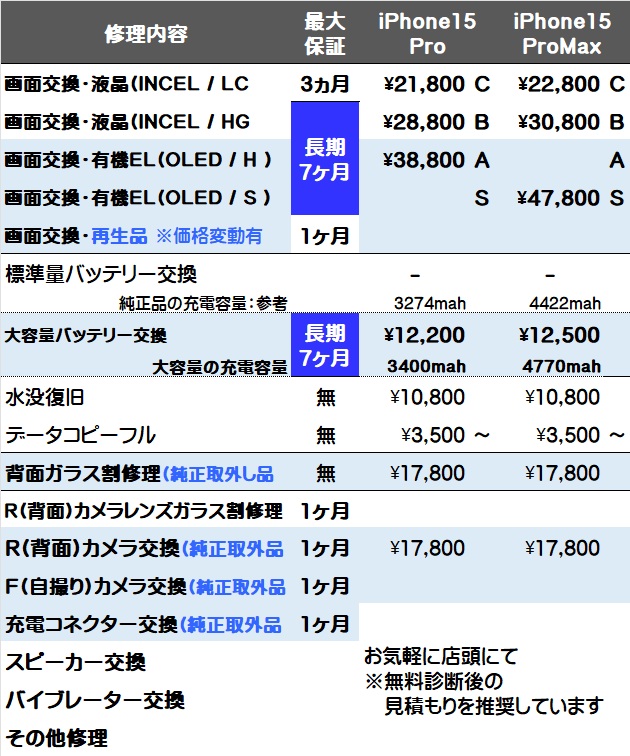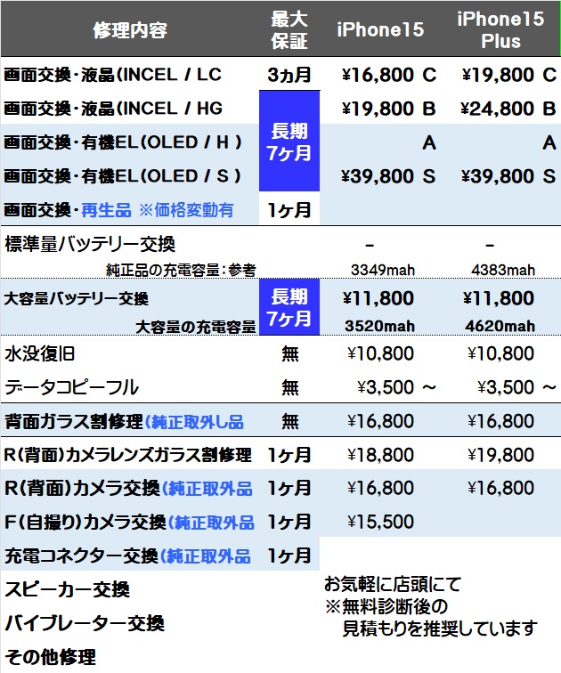 画面交換と大容量バッテリー交換が対象で
