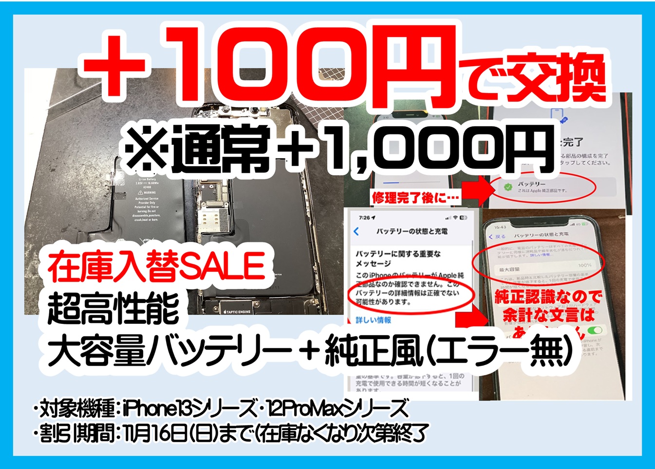 ★画面とバッテリーなど同時交換で割引