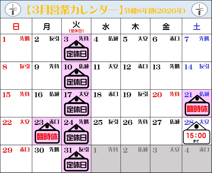 ※営業終了間際のご来店はお気をつけ下さい