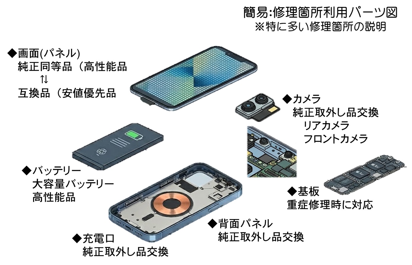 ※他に「純正同等品や性能&価格のバランス品」など画面交換修理品も多数ご用意
