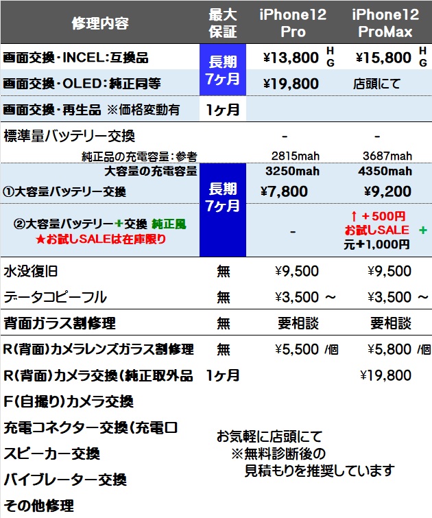 通常はどのお店で交換しても画面交換やバッテリー交換をすると