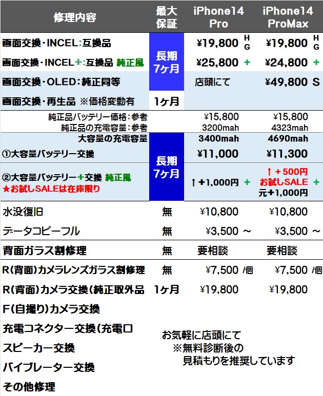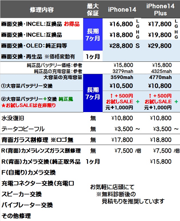 通常はどのお店で交換しても画面交換やバッテリー交換をすると