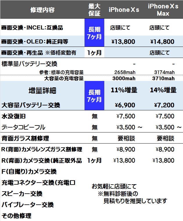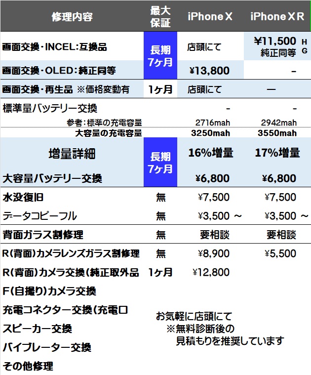 画面と大容量バッテリー交換は全て対象