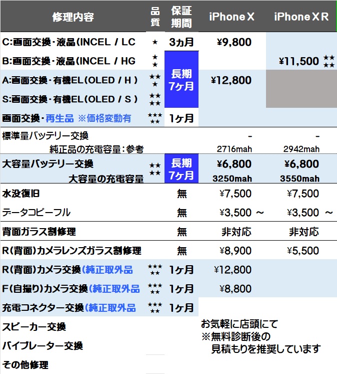 画面交換と大容量バッテリー交換が対象で