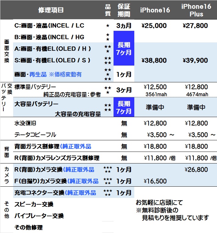 通常はどの修理屋さんで画面交換やバッテリー交換をすると