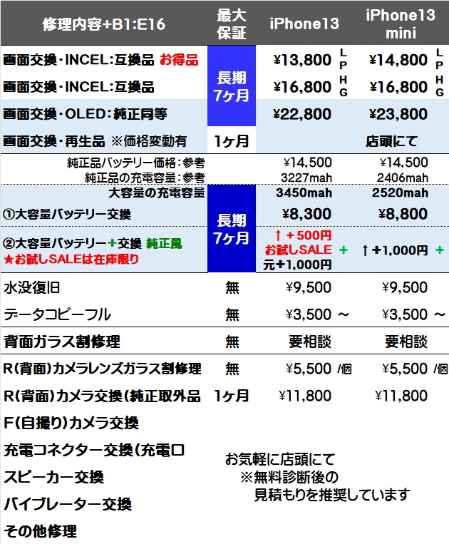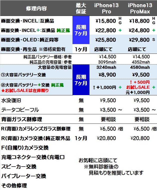 通常はどのお店で交換しても画面交換やバッテリー交換をすると