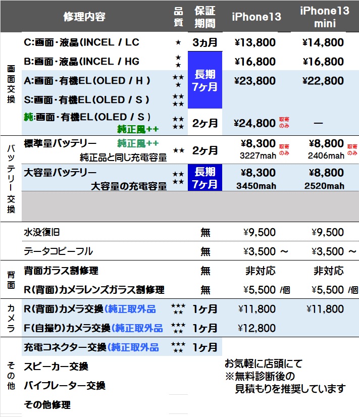 画面交換と大容量バッテリー交換が対象で