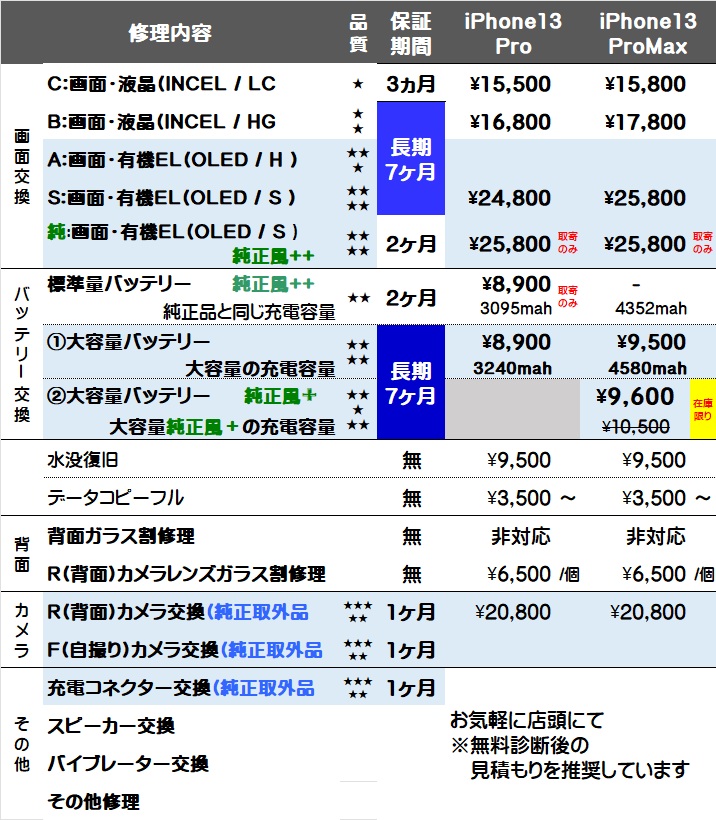 (最短翌日午前中入庫→午後修理可能です)
