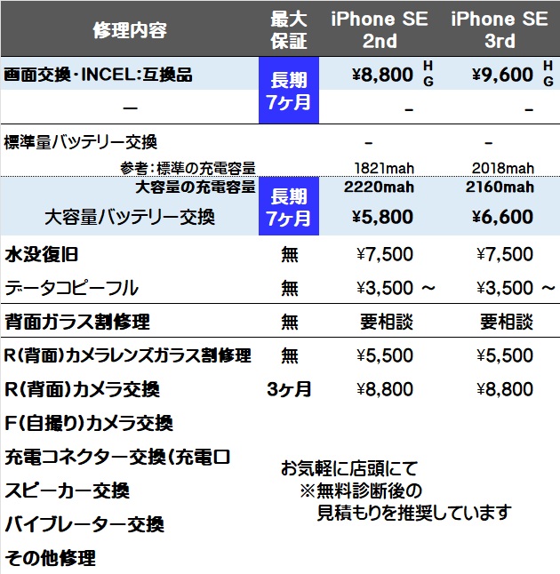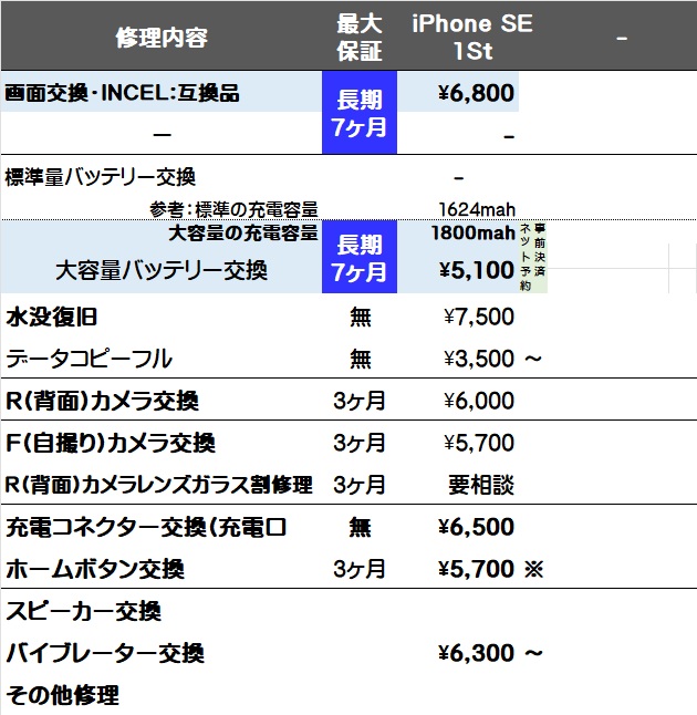 画面と大容量バッテリー交換は全て対象
