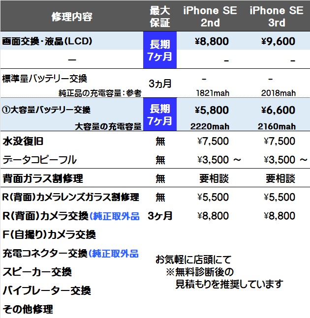 画面交換と大容量バッテリー交換が対象で