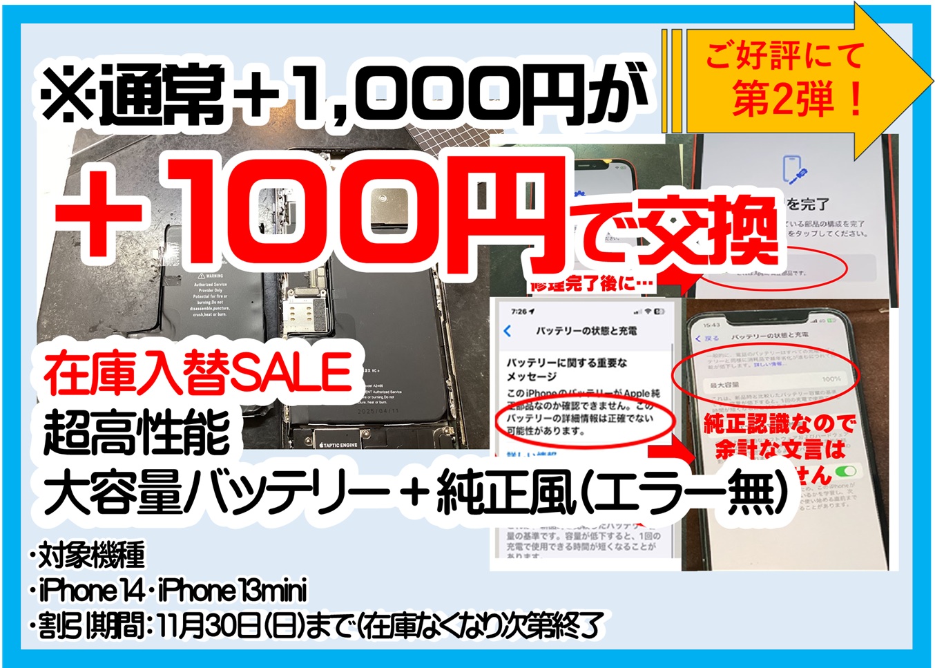 ※ネット予約受付は「前日の午前中まで」となります 👉予約受付可能一覧 ◆大容量バッテリー交換 専用◆ 👉大容量バッテリー 👉大容量バッテリー★純正風Ver 👉(オンライン前決済)「大容量バッテリー or 旧機種」の受注発注l機種 ※オンライン決済はクレジットカード必須となります ※希望の機種項目が無い場合はネット予約不可となります |